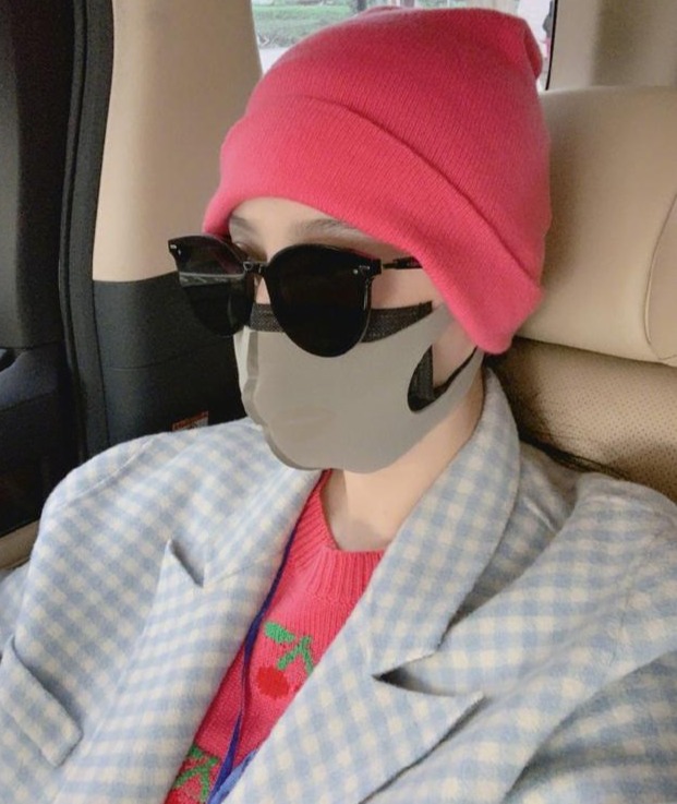 照片中的范冰冰将自己“全副武装”,她头戴亮粉色毛线帽,搭配黑色墨镜,同时戴着两层口罩,身穿淡蓝色格子大衣,防护措施十分到位。
