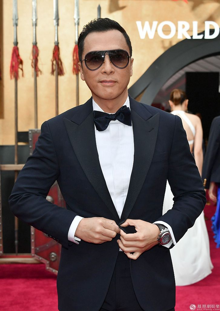 甄子丹墨镜遮面,西装革履尽显型男范儿。