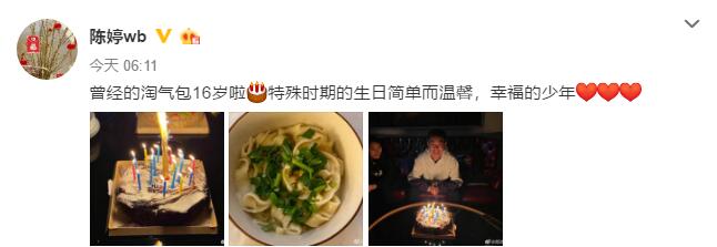 3月10日一大早,张艺谋妻子陈婷在微博晒出了一组照片,配文:"曾经的淘气包16岁啦特殊时期的生日简单而温馨,幸福的少年"