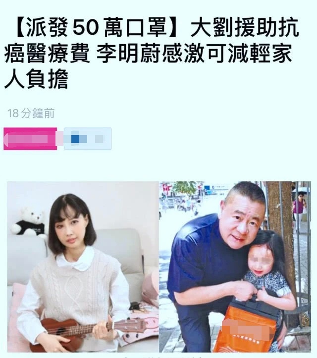 李明蔚也回复记者,证实刘銮雄有帮助她,她没有想过大刘会留意到她的苦况,内心很感激刘銮雄夫妇,“看医生的开支好大,感谢他们为我以及我的家人减轻负担!”