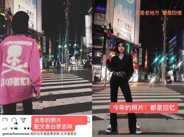 在去年同一时刻,她曾上传了同样地点的照片,配文是:“我的右手边是东京塔,左手边是你”,两张同类型的照片,配文的含义确是大相径庭,不免让网友开始猜测。