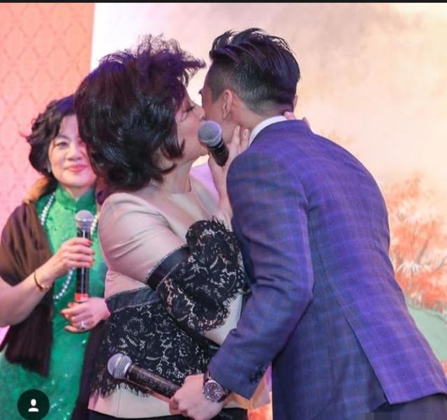 在寿宴上还有一位徐小凤的小迷弟,徐小凤则送给了这位幸运的粉丝一个轻轻的吻,整个过程都非常的大方,毫不拘谨,小迷弟身上穿着紫色的西装,紧紧的握着手里的话筒,可以看出此时此刻他也是非常的紧张。