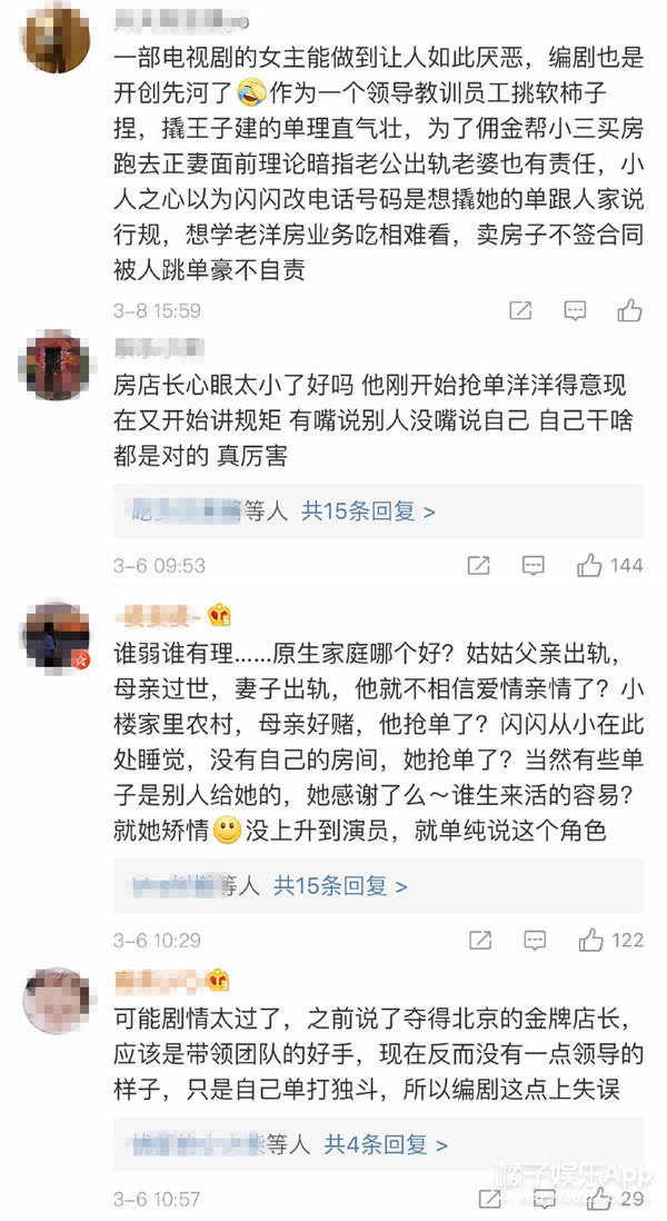 生活没能让我生气, 但《完美关系》和《安家》可以。 《完美》演到男女主初kiss了↓ 按理说挺甜的吧? 但这个吻来的有点莫名其妙。 前一秒还在说男主“不能跟女性亲密接触,接吻也不行”: 下一秒就亲上了? 是想说爱到深处情不自禁,所以能战胜一切疾病... 包括焦虑症? 另外这个镜头也不够美。 江达琳终于剪了短发, 但这个妆容和打光依旧不可: 甚至在这么重要的一个镜头里,竟然还能看到她的皱纹↓ 不是对长皱纹不满意, 是在气后期没有拍出理想的效果..... 算了,反正这部剧的风评靠一个吻也救不回来。 播了三十多集,豆瓣只有4.0↓ 我每天都在被女主的沙雕言论震惊。 她在国外上学的时候被房东骗了, 但得知理由后表示非常理解: “原来我的房东拿着骗我的钱去做慈善了,我心里舒服多了” ? 如果不是亲耳听到,我不敢相信这是芒果台上星剧里能出现的台词。 江达琳,27岁,研究生毕业,独立女性, 一个公司的总裁,每天不是谈恋爱就是和卫哲互怼。 理解,导演想塑造职场剧女主的成长逆袭, 但这都播了一大半了还是这个人设,贵总裁是不是成长的太慢了? 无法以一个成年人的视角理解江达琳的所作所为, 她不是傻白甜,可能只是单纯的傻...... 在女主的对比下,男主成了讲道理有耐心有礼貌挽救一切的温柔大神...... 说真的,我很担心类似剧情对下一代的影响, 该不会真的有人以为只要够傻,就一定能等来一个霸道总裁的男友成为自己的救世主吧? 佟丽娅因为演了这个角色“风评被害”, 殊不知她有可能就是按剧本演的↓ “瞪”×10010▽ 是不是“瞪”了? “尴尬”▽ 够尴尬吧? 所以说这口大锅不能让演员一个人背。 《完美关系》讲的公关行业的事, 但真正搞公关的却表示“雨我无瓜”↓ 影视剧多少有一些夸张,但夸张到脱离现实... 真的不必。 头一次见到一部剧里光惹人厌的角色就能数出一个巴掌。 比较突出的,一个是崔英俊, 渣男人设集大成者,找小三吃软饭,该干的都干了: 另一个是马邦妮, 江达琳的闺蜜,为了满足虚荣心甚至把自己的男友带到别人家过夜: 崔英俊渣的可以理解,但马邦妮这条线确实加的莫名其妙...... 安排性格鲜明的角色和波澜起伏的情节可以为故事发展服务, 但前提是这样的设置要有理有据,令人信服。 为了气人而气人,为了夸张而夸张, 这种感觉怎么说呢, 我仿佛看到了写高考作文时硬凑字数的自己..... 再说《安家》。 应该都知道了吧,它和《完美关系》是同一个导演, 甚至共享部分配角。 这边的渣男和合伙人↓ 到了隔壁都得去卖房↓ 不知道是不是团队配置差不多的原因, 两部剧比着气人。 你有崔英俊,我有张承承↓ 你有马邦妮,我有朱闪闪↓ 张乘乘, 韩剧式演法第一人, 很多人看不惯她叫男主哥哥, 教你一招,把“哥哥”转换成“欧巴”试试: 是不是适应多了? 目前来看, 这个角色的出现主要起到俩作用: 1、给男主塑造温柔暖男人设; 2、反讽 “我只是犯了一个全世界男人都会犯的错,只不过我是女的。” 要不“你在外面也找一个” 有被笑到。 按理说这样的角色在一般剧里最多“活”两集, 没想到她直到现在还在疯狂出镜...... 咋滴,上头有人啊? 一查,还真是↓ 朱闪闪。 她的出现让我怀疑自己混了个假职场。 作为房产中介,没开过一单,拿着底薪理直气壮混了两年日子: 让干啥不干啥,跟刚来的顶头上司各种一哭二闹三上吊: 这样的废柴没被开除的理由竟然是,她是这家店里的团宠。 我宁可相信店是她家开的...... 以后再有人问我“你以为公司是慈善机构啊?” 我就把朱闪闪的名字报上去。 女主房似锦。 万幸,不是傻白甜。 走励志人设↓ 张口闭口“不干活就会死” 新官上任就签了好几单。 乍一看挑不出毛病吧? 然而随着剧情发展,她最近也被吐槽了。 为了赚钱“急功近利”不顾后果,抢别人单却不允许别人抢单..... 女主有让人生气的地方,男主最近也正被吐槽中。 在一部分观众眼里,徐姑姑温暖善良,热心助人, 从不争鲜花,自愿当牛粪: 但也有一些人认为, 男主就是个傻白甜老好人, 所谓的业务能力只存在在别人的嘴里... “房似锦天天出去跑业务,你干嘛了?” 在最近的采访里,罗晋也回应了大家对徐姑姑人设的质疑↓ “所谓的正确的价值观,也只是徐姑姑自己认为的,当然有很多人会认为他的价值观不正确,因为每个人的立场不一样,这就是人物带来的可以探讨的地方” 至于作为店长的业务能力不能服人,他是这么解释的↓ “他已经进入的是一个管理层.....他的业务能力其实是他的前瞻性” 好像有那么点道理..... 不过还是觉得男主设定过于理想化。 “前期男主祖师级圣母,后期女主智商下线” 目前为止,关于男女主的人设都出现了有争议的部分, 也许是每个人的立场和看问题的角度不同所致, 但确实也反映了,编剧和演员在对角色的处理和创作上还有改进的空间。 其实《安家》播到现在,最让人气愤的还不是上面这些剧情, 而是讲述房似锦和徐姑姑原生家庭的部分↓ 房似锦家: 爸妈重男轻女▽ 弟弟背地里要钱▽ 徐姑姑: 爸爸出轨,妈妈抑郁症跳楼.... 朋友们,我好不容易治好的“原生家庭ptsd”又犯了, 即便知道房似锦是有原型的....... 遗憾归遗憾, 但说好的正儿八经只搞事业的职场剧呢? 怎么又有家庭狗血伦理剧内味儿了? 女主不被重男轻女的家庭伤害就不能有出息了? 男主经历过父母离异就一定得恐惧