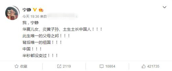8日晚,宁静发文,否认改国籍传闻:“我,宁静,华夏儿女、炎黄子孙、土生土长中国人!此生唯一的父母之邦!背后唯一的祖国!中国!半秒都没变过!!!”据悉,此前有传闻称宁静因嫁给外国人改成了美国国403微信扫一扫复制下方链接,去粘贴给好友吧-宁静发文否认改国籍:华夏儿女、炎黄子孙、土生土长中国人!复制链接本文由网络整理 © 版权归原作者所有