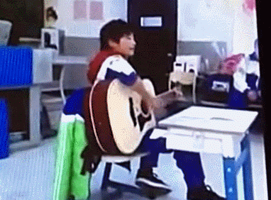 在班级元旦晚会又是弹吉他唱歌▼