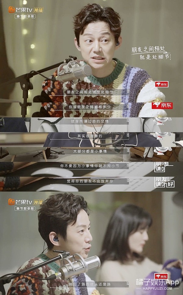 这一段橘子看的真的十分舒服,就好像是朋友之间在聊天,你一言我一句的对朋友遇到的问题提出自己的看法,没有刻意的说教,只是不停的交流沟通碰撞出更多的解决方式,