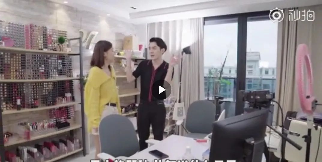 平时直播的地方也在一楼。以前我们只能从小屏幕里看到那面口红墙,现在换个角度看,嗯,窗帘很素,阳台很大。