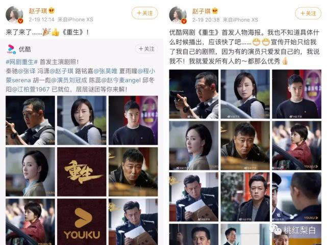 这一次撕番,起因很简单:贵为《重生》的女一号,剧组居然没发她的宣传海报,女演员里只放了赵今麦的。