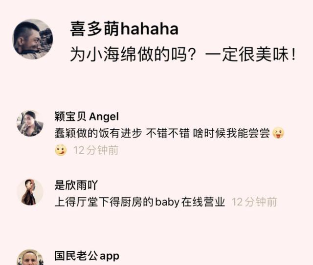 网友排队留言夸Baby厨艺有进步,上得厅堂下得厨房的她还被赞“好母亲好妻子”。