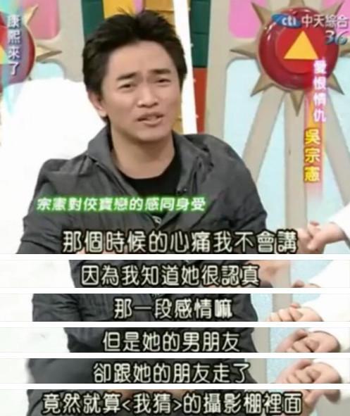 甚至吴宗宪多年后录制小S的《康熙来了》时都感慨她被好友抢走男友,这样的经历让他作为旁观者也感觉到心痛。