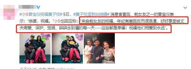 3月5日,小S依然主动送上自己的祝福:“来自前女友的祝福,年纪有差距反而很浪漫,好好享受被丈夫疼爱、保护、宠溺、碎碎念到爆的每一天⋯⋯这些都是幸福!祝福他们相爱到永远”。
