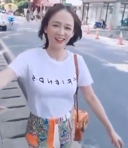 在视频中,陈乔恩皮肤白皙紧致,身穿白色短袖和橙色印花长裤,搭配利落的短发,看起来清爽又大方,丝毫不像已经40岁的人。