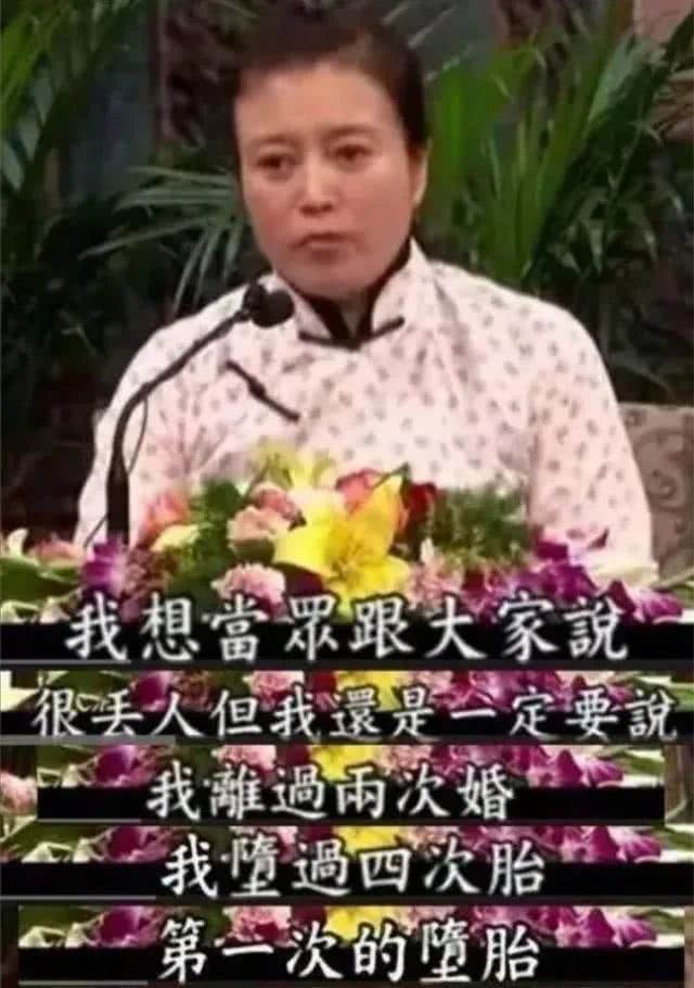 而丁嘉丽在某次活动中,还当众说出了自己一共有过4次堕胎经历,2次失败的婚姻,为此自己一直在忏悔。