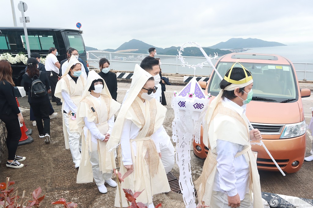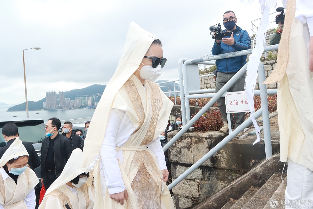 郭富城太太方媛披麻戴孝现身,面色凝重。