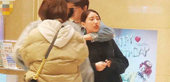 小玉和女友的亲昵举动远不止接吻这一项,两人在KTV门口也撒了一把狗粮。只见小玉仗着身高优势,一把从后面勾住女友的脖子,女友丝毫不介意反倒很配合,还调皮地吐了吐舌头,十分可爱。