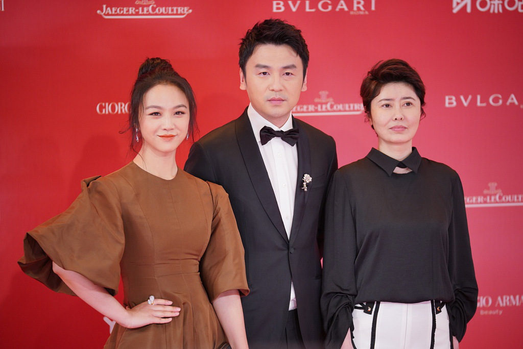 王珞丹深V银裙尽显曼妙身材,相当抢眼。身边的谭卓一袭黑色透视纱裙,成熟优雅。