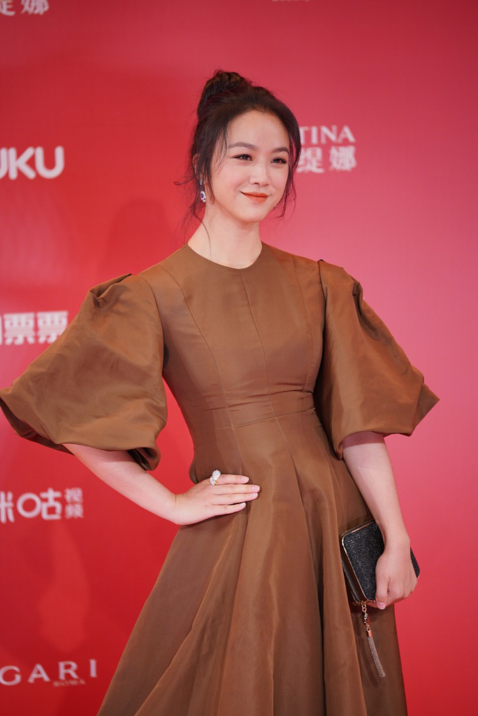 当晚,舒淇的另一套造型更加俏皮柔美,一身紫色亮片纱裙,仙气十足,对着镜头比出剪刀手,心情大好。