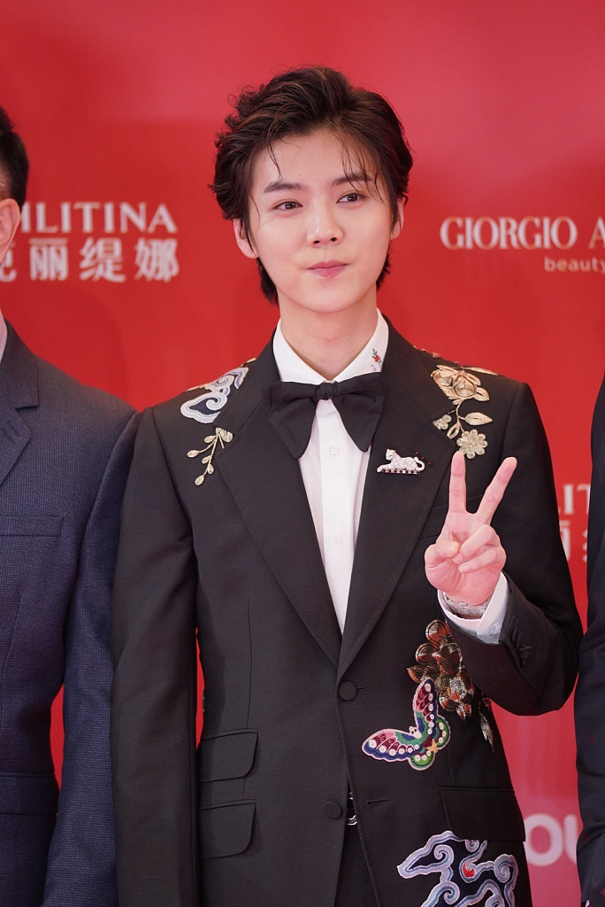 国产科幻战争电影《上海堡垒》剧组出席上影节红毯,男主角鹿晗身穿印有花纹图案的黑色西装,现场比出胜利手势,自信满满。他表示,这次拍摄向舒淇学习了不少,他们在片场的合作非常融洽、开心。舒淇的短马甲亮片外套造型简单、利落,她在现场透露,影片的一大看点是感情戏。