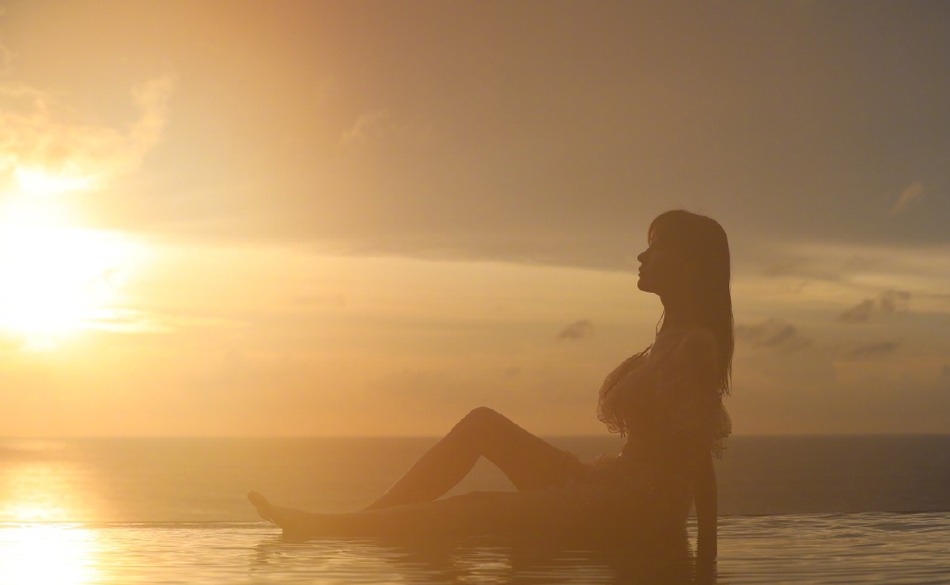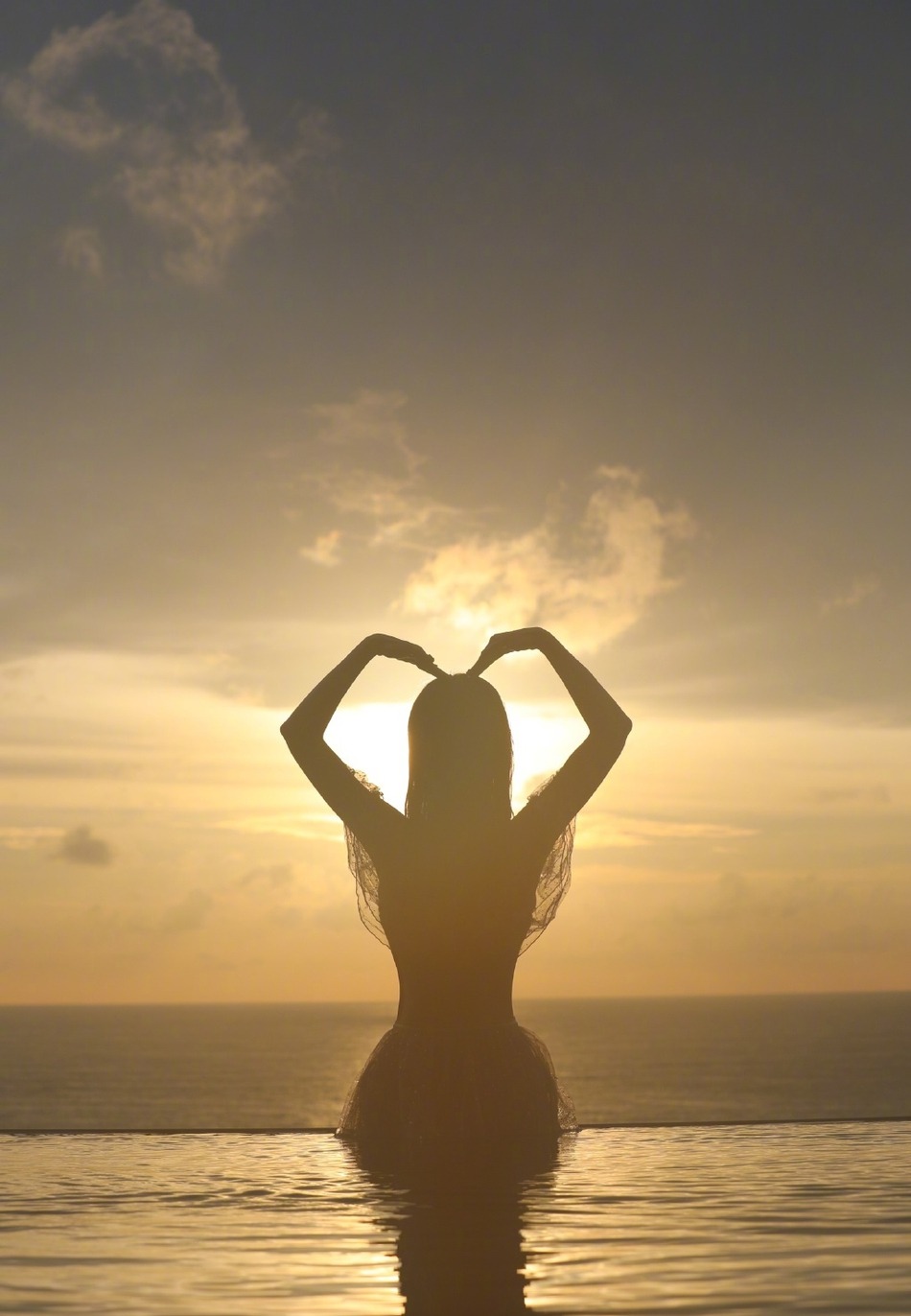 张檬晒日落剪影,文静美好。