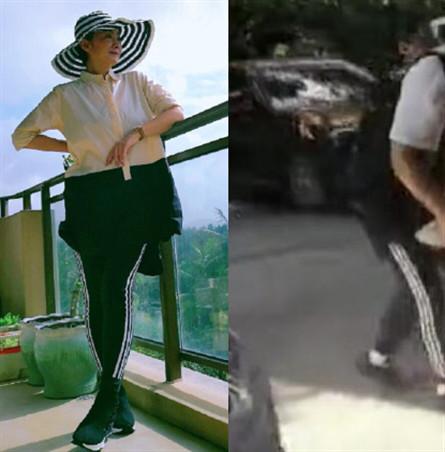 视频中张嘉译穿着白色T恤配一条黑色短裤,他头戴渔夫帽和墨镜口罩遮面,脚踩一双黑色人字拖,由于患有强直性脊柱炎,张嘉译走路的姿势与常人不同,所以一眼就能够认出的确是他本人。