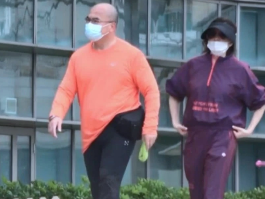 关之琳这次在公园运动有一个胖胖的光头男子全程陪伴在身边,两人有说有笑。
