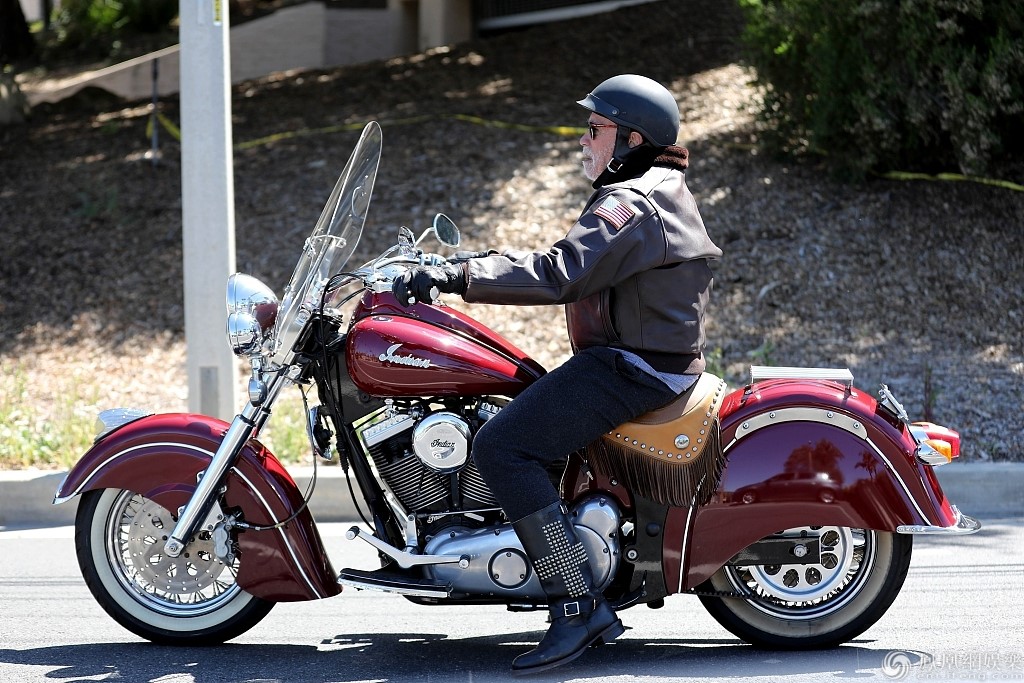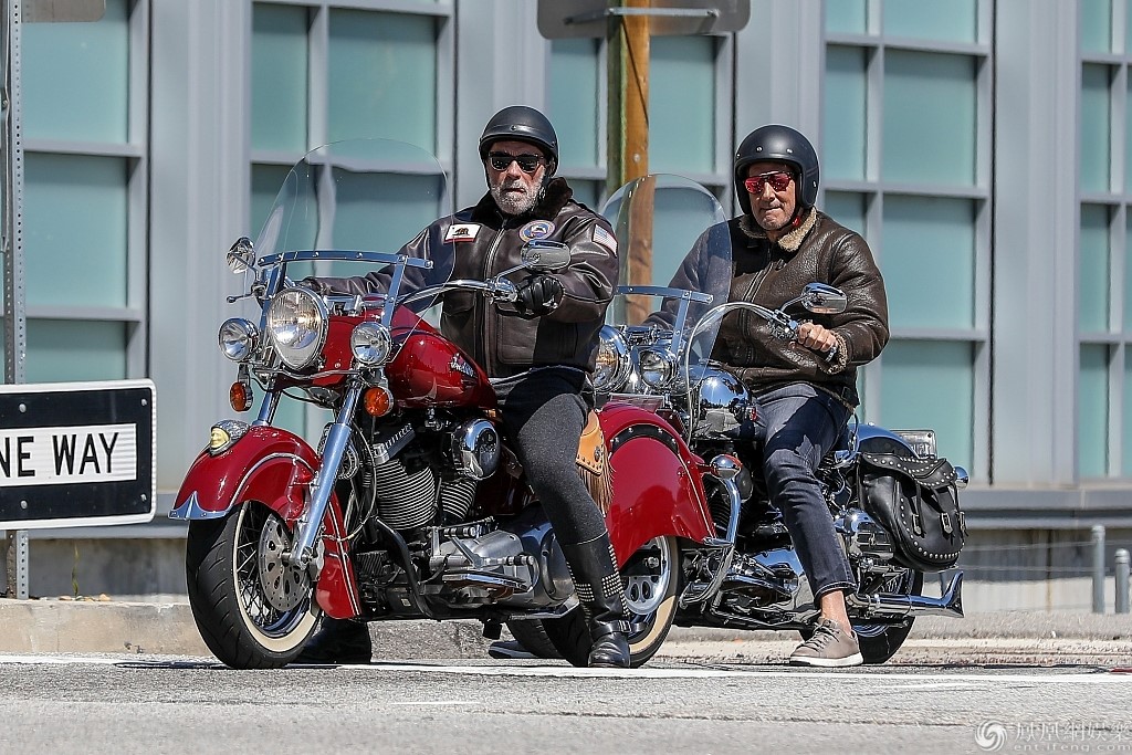 施瓦辛格骑红色炫酷摩托车,酷劲十足。