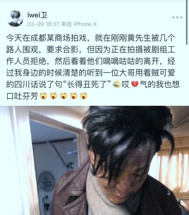 3月29日,黄晓明的小助理发文,透露黄先生在商场拍戏时候,竟然遭路人在现场大骂“长得丑死了”,什么情况?