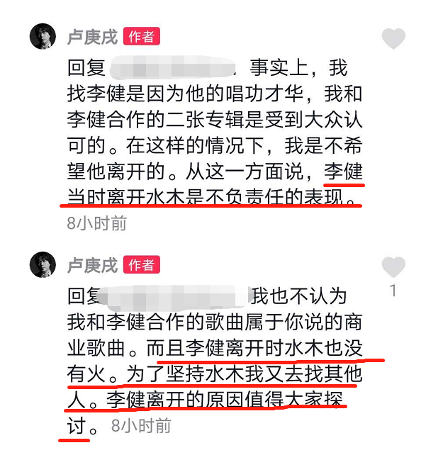当网友问到为什么这些年都没有澄清这件事,卢庚戌表示因为他很珍惜和李健的友情,所以不愿意回应这些传闻,但是随着“卢庚戌商业,李健随性”的报道越来越多,他很难受。