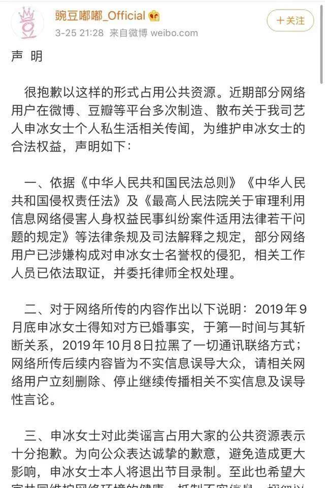 就在渣男的推波助澜中,舆论发酵到最高点,当晚,申冰就通过豌豆嘟嘟_Official官方声明宣布退赛了。