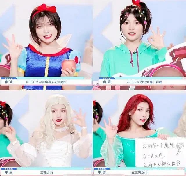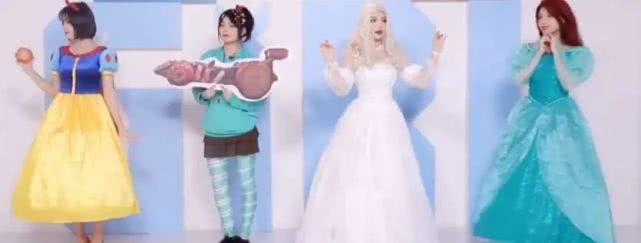节目中,自我介绍环节,四胞胎“冰清玉洁”,选择了以cosplay的方式呈现,cos的对象是迪士尼世界的角色。好死不死的是,她们虽然披着迪士尼公主们的外衣,却是在着实地毁人形象!