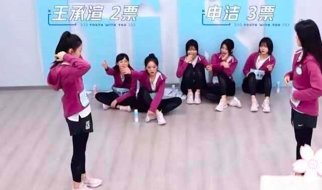 组内的申洁和另一个组员王承渲在争C位中平票,所以她们需要进行二次比赛和投票。而比赛的形式,就是尬舞。
