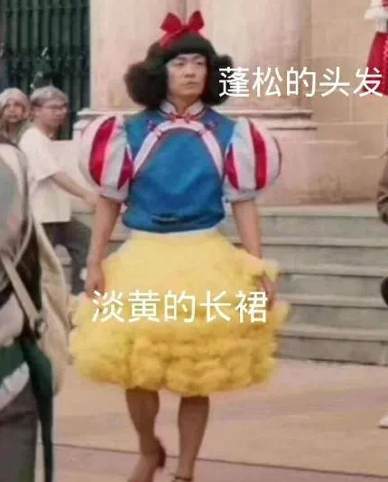 请问是这样淡黄色的长裙和蓬松的头发吗?