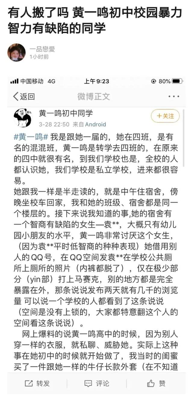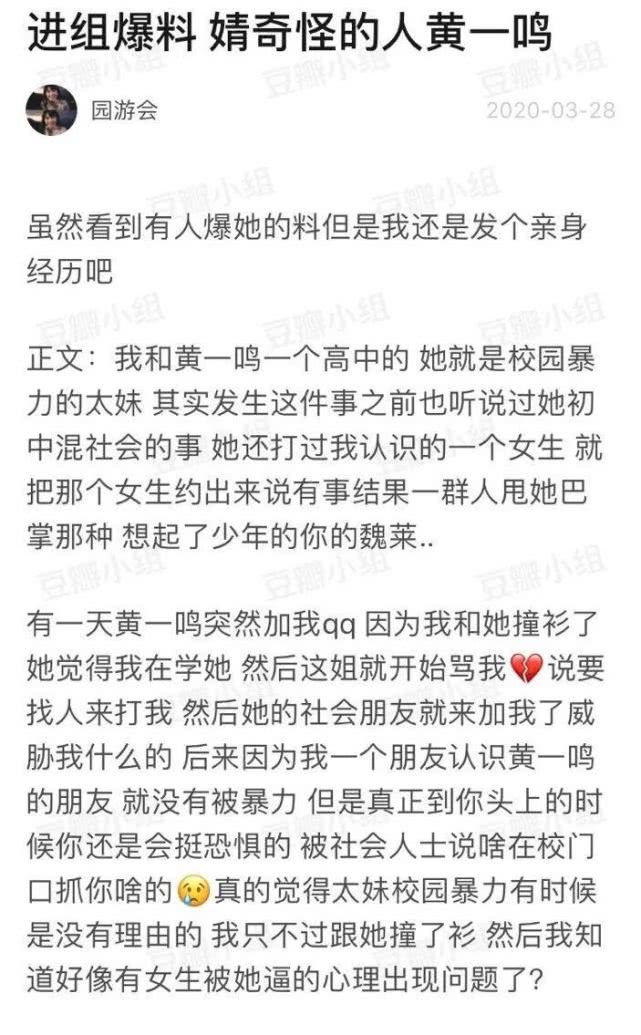 本以为四胞胎和段小薇已经够作妖的了,没想到又来了个黄一鸣,被她的同学爆料她在初中时期校园霸凌,是个混社会的小太妹。