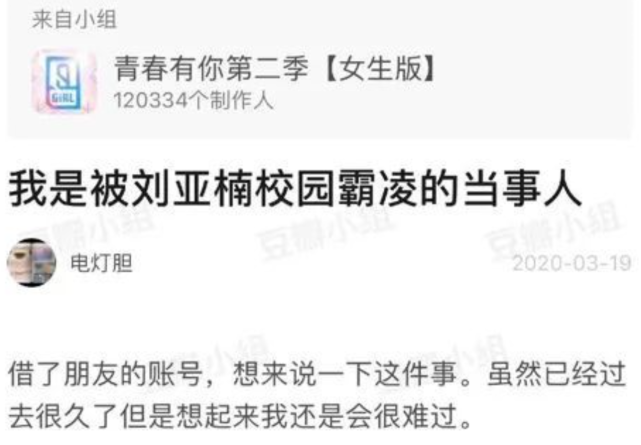 不扒不知道,一扒吓一跳!原来《青春有你2》的选手中,有过校园霸凌的不止黄一鸣一个人,刘亚楠也是其中一位,就是和虞书欣进行battle的那位。如今直接被当事人挂出来了。表面如此甜美的一个妹子,还真是看不出来竟然有两副面孔。