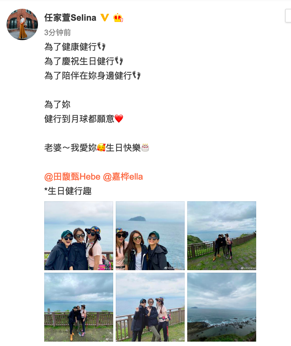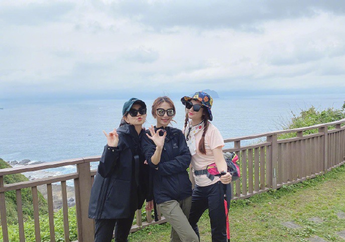 3月30日,Selina晒出与Hebe、Ella同游徒步健身的照