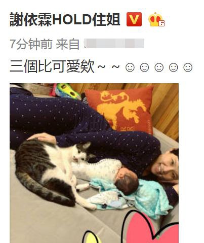 到3月30日是产后第四天,谢依霖已顺利出院,她再次晒出儿子近照留言“三个比可爱欸~”