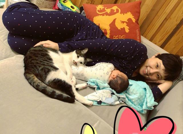 谢依霖生产后马上分享了一家三口照片,照片中儿子趴在谢依霖身上,谢依霖则趴在老公身上,温馨场面十分有爱。