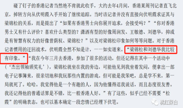 嗅觉灵敏的香港狗仔另辟蹊径,跑到北京采访起了伏明霞:喜欢潇洒有型的周润发、王敏德、刘德华,还是有智慧有权力的曾荫权、梁锦松? 伏明霞也老实:梁锦松和刘德华我比较有印象。
