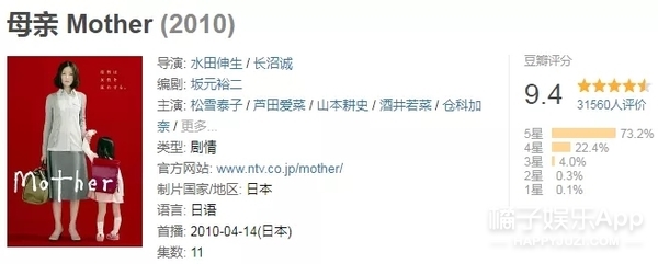 本剧翻拍自经典日剧《母亲》,日版在豆瓣高达9.4分,已经是10年前的剧了。