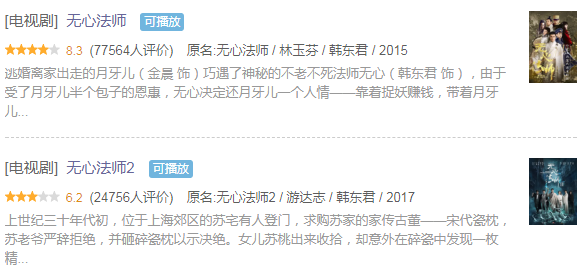 15年第一季《无心法师》上线,到2020年,《无心法师》迎来了第三季。这部改编自尼罗同名小说的系列剧,三季都启用了不同的导演,前两季评分起起伏伏。
