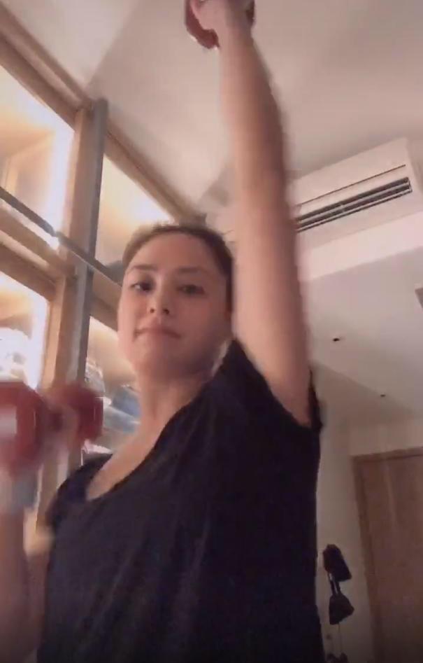 近日,阿娇在某短视频平台上发布一则自己在家一边健身一条跳网红曲目“惊雷”的视频,虽然人美又努力健身,但风头还是完全被身后的一面奢华的包包墙和豪宅内景抢