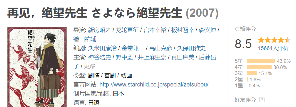 本片原作者久米田康治的代表作是脑洞惊人、疯狂玩梗,古今中外无所不黑的《绝望老师》。