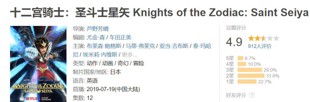 现在这预告的感觉,真的让我不由想起了去年同样是网飞投资,同样建模简陋的《圣斗士星矢》: