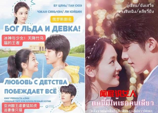 有趣的是,海外剧名居然窜上了热搜第一,画风很是清奇:在俄罗斯,这部剧叫做《冰神与少女!天降竹马届的王者》,亮点是海报上的文字:亚洲醋王虐妻猛如虎,追妻像只猫~