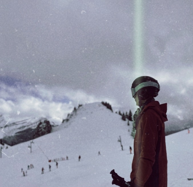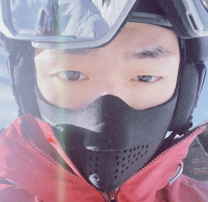 20岁的小宝身穿红色滑雪服全副武装,只露出眉毛和眼睛。