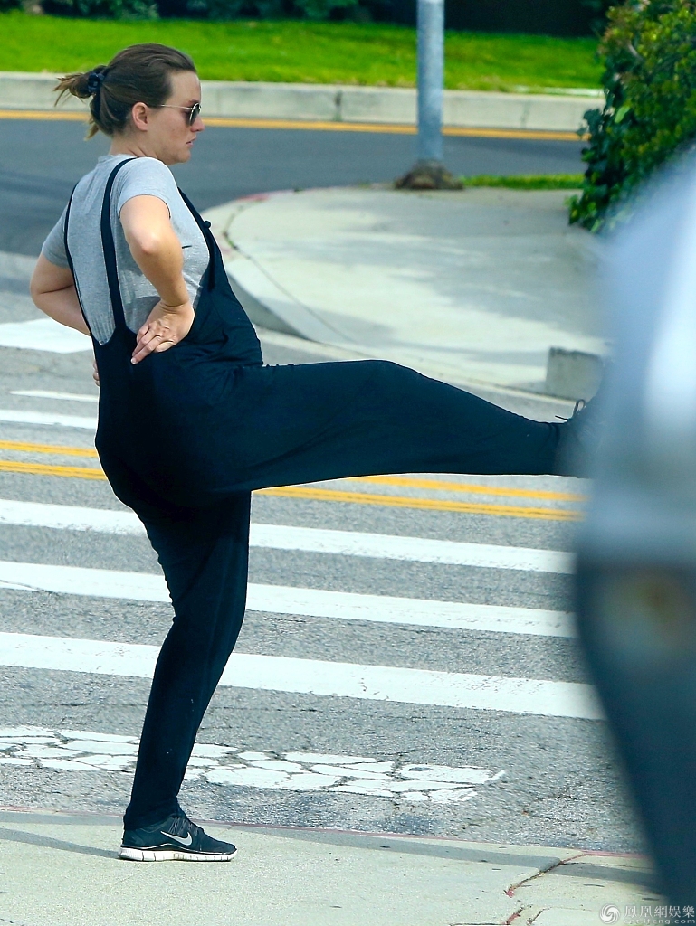 莉顿·梅斯特穿背带装挺孕肚逛街。