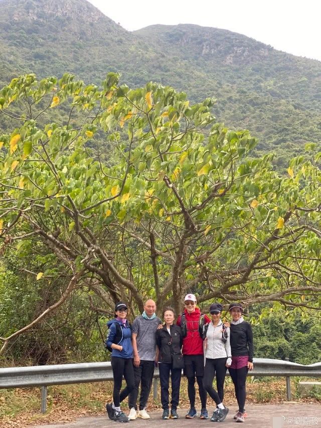 3月3日,刘嘉玲上传了几张爬山的合照,她的妈妈和弟弟也在其中。