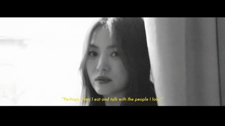 3月31日,宋慧乔在个人社交品台上公开了一段接受某服装品牌访问的片段。片中问到宋慧乔喜欢白天还是深夜,她说:“我比较喜欢深夜,因为可以一个人享受闲暇的时间。”