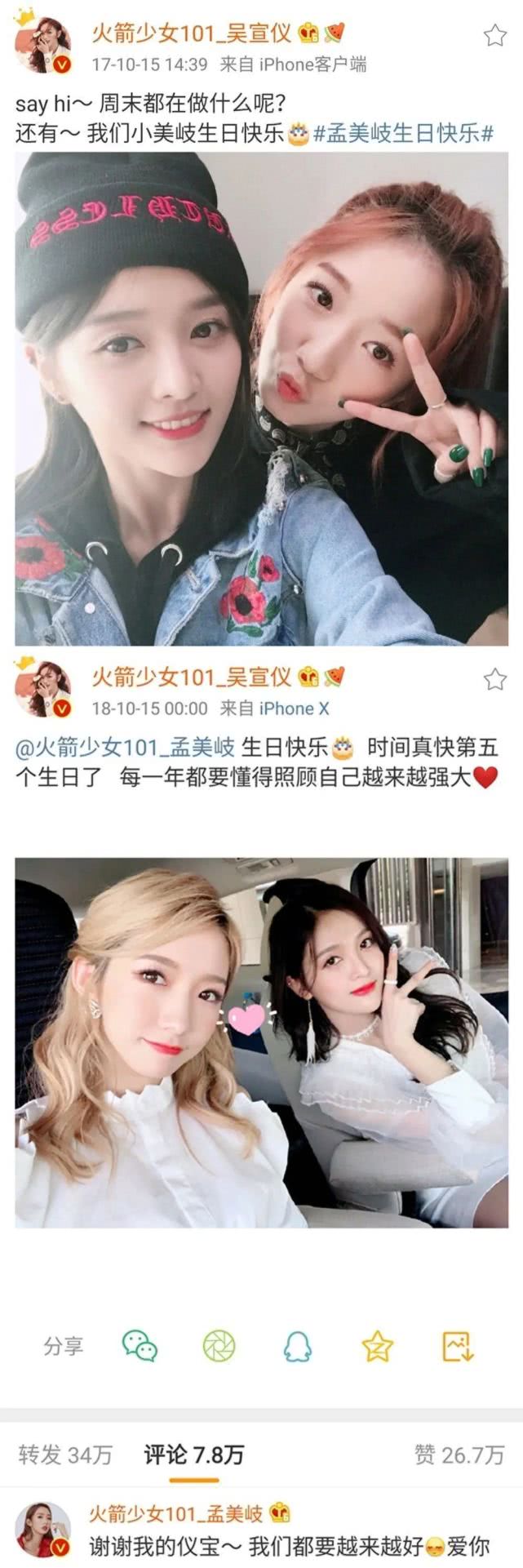 相比大多数人都是通过《创造101》认识的吴宣仪和孟美岐,看到她们在节目里相爱相杀,直到现在。