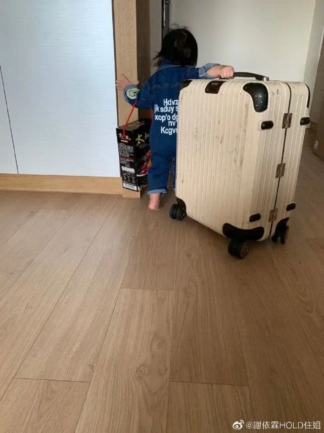 今年年初,谢依霖曾在个人社交平台晒照,里面就是女儿拿着跟自己差不多大大的整理箱的样子,非常的可爱俏皮!